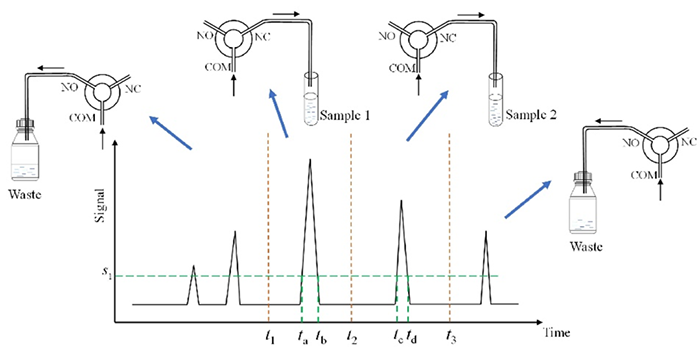 時間+閾值組合(更精準): 例如,設定在t1-t2時間段內收集“樣品1”,但只有當此時間段內信號強度也同時達到閾值s時,才真正啟動收集閥切換到收集狀態(NC口連通),否則視為無效或廢液(NO口連通)。這有效避免了收集到非目標或低濃度餾分,提高了目標物的純度和回收率。