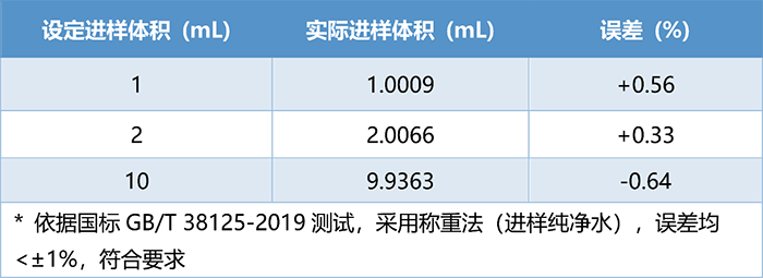 1、進樣精度:不同體積下,誤差均控制在 ±1% 以內,重復性優異,為可靠分離奠定基礎