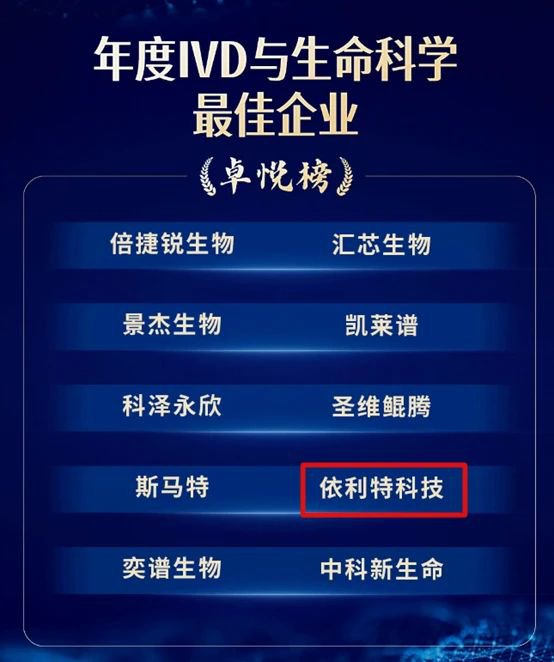依利特榮登年度IVD與生命科學佳企業卓悅榜榮登第九屆醫療健康投資卓悅榜