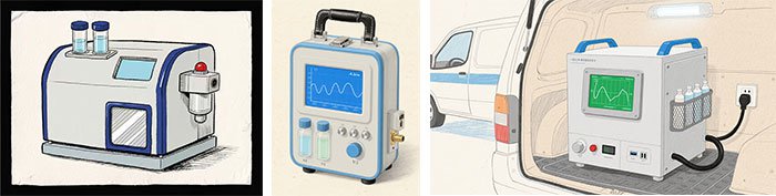 一體式、便攜式、車載式的部分都放一起,圖片放一排三張小圖片。內容如下:除了經典的分離式模塊化HPLC之外,還有一體式、便攜式、車載式等多種HPLC的形式,分別適用于實驗室空間極其緊湊、需要現場測試等應用場景。當然,一體式、便攜式這種HPLC形式為了實現更小的體積和便攜需求,通常會通過集成化設計、固定配置、壓縮儀器功能等方式來節省空間,同樣也就帶來了不夠靈活、功能受限、性能受限等一系列弊端。您可以根據實際使用需要來選擇合適的儀器。