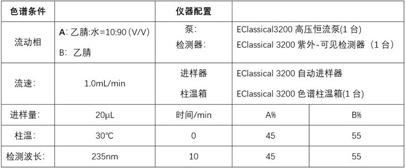 肉桂醛是一種香料,它具有促進生長、改進飼料效率以及控制禽、畜細菌性下痢的功能,并能增加飼料的香味,引誘動物進食,還能長時間防止飼料霉變。肉桂醛還可以促進雞、鴨、豬、牛的生長,提高氮素在動物體內(nèi)的貯留量(約提高7%)而氮素為合成動物肌肉細胞的主要成份,所以對屠體品質(zhì)的改善具有正面的影響。依利特使用EClassical 3200液相色譜儀匹配經(jīng)典的Supersil ODS2色譜柱,對肉桂醛樣品的成分進行分析檢測。