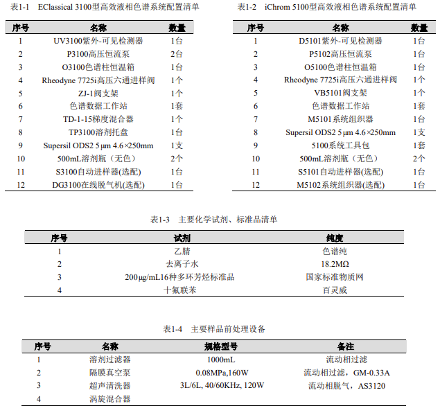 5.2 儀器設備與試劑 (液液萃取 - HPLC 法) .................................................... 24
