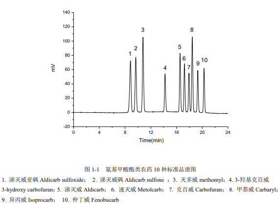 圖 1-1 氨基甲酸酯類農(nóng)藥 10 種標(biāo)準(zhǔn)品譜圖