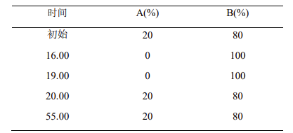 流動相組成 (V/V):乙腈 / 水 = 95/5;甲醇 = 95/5(原文表述修正:應為 “乙腈 / 水 = 95/5”,推測為筆誤)