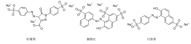 合成著色劑可分為偶氮類和非偶氮類兩種結構,在酸堿條件下均穩定;按溶解性可分為脂溶性和水溶性,其中脂溶性著色劑因不溶于水、體內不易排出、毒性較大,已不允許在食品行業添加,目前世界各國使用的合成著色劑多為水溶性偶氮類著色劑。