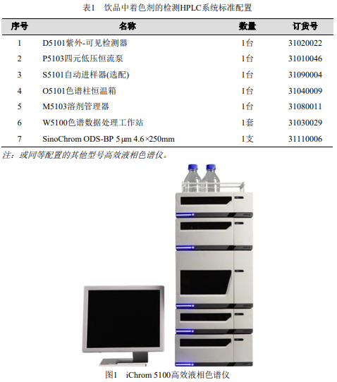 本實驗參考 GB/T 21916-2008《水果罐頭中合成著色劑的測定 高效液相色譜法》 及 GB/T 5009.35-2003《食品中合成著色劑的測定》,采用大連依利特公司生產的高效液相色譜儀,對著色劑標準品、線性及加標回收率等進行檢測方法驗證,并檢測實際飲品中檸檬黃、胭脂紅、日落黃的添加情況。