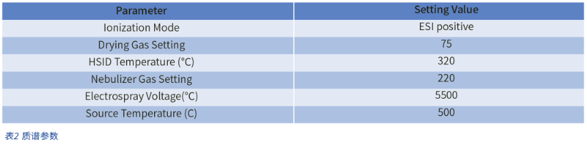 液相色譜和質譜參數分別參見表 1、2 和 3