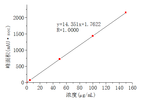 以3倍信噪比峰高對應的濃度換算為方法檢出限,以10倍信噪比峰高對應的濃度換算為方法定量限。