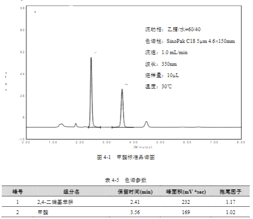 按照 4.3 中實驗方法,對甲醛標準溶液進行測定,結果如下:
