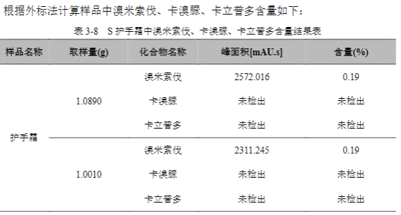 根據公式計算溴米索伐、卡溴脲儀器檢出限、定量限和方法檢出限、定量限,結果如下: