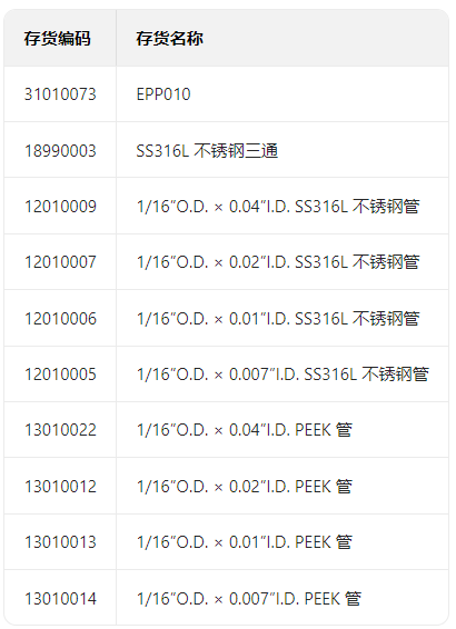 通過 PEEK 管 / SS316L 不銹鋼管路分流比數學表達式計算,可選取內徑為 0.007”I.D.、長為 90cm 的 PEEK 管作為支路 1;內徑為 0.007”I.D.、長為 10cm 的 PEEK 管作為支路 2,則支路 2 的流量即為 100μL/min。